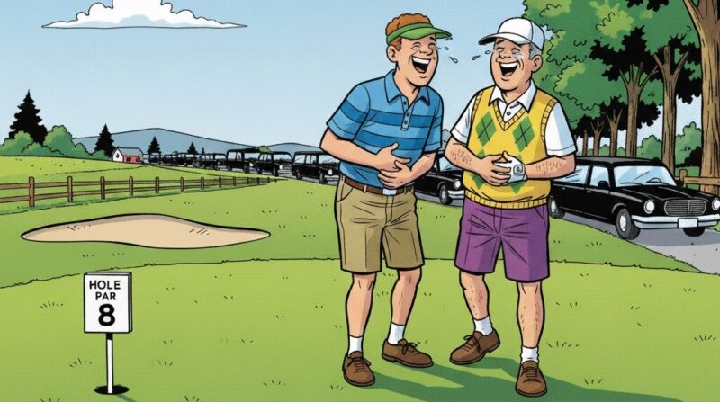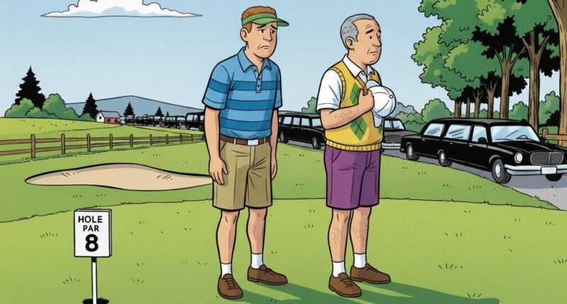 The golfer slips his hat back on, sighs, and says, “Least I could do. I mean… I was married to her for 20 years.”