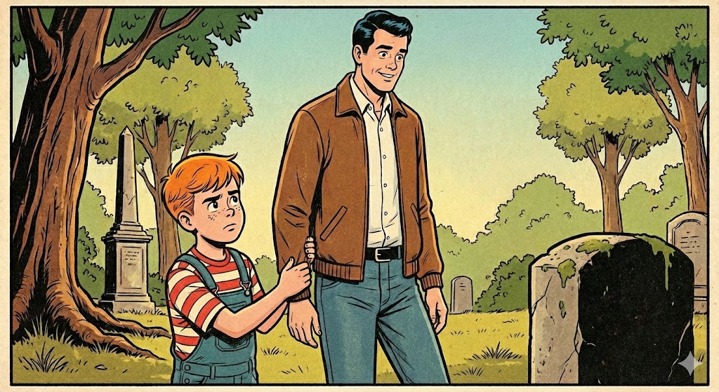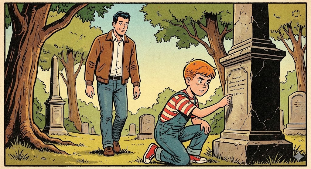 A father and his young son were taking a quiet walk through an old cemetery.