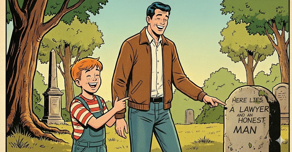 “Because I just saw one that said, ‘Here lies a lawyer AND an honest man.’”
