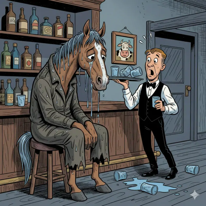 He walks up to the bartender and says “Hey, no long face jokes. You wouldn’t believe the day I’ve had. First, I spend ten hours at work today just typing numbers into a computer. It was so busy, I didn’t even have a chance to take my lunch.”