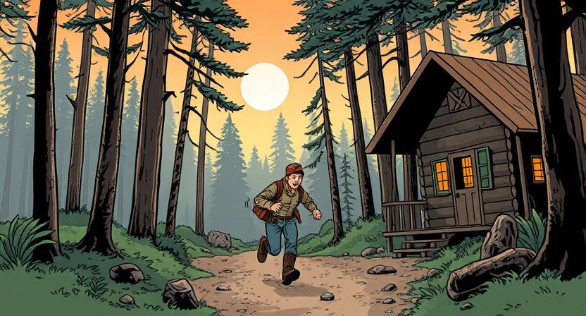 Bubba runs through the front door of the cabin with the bear less than 20 feet behind him.