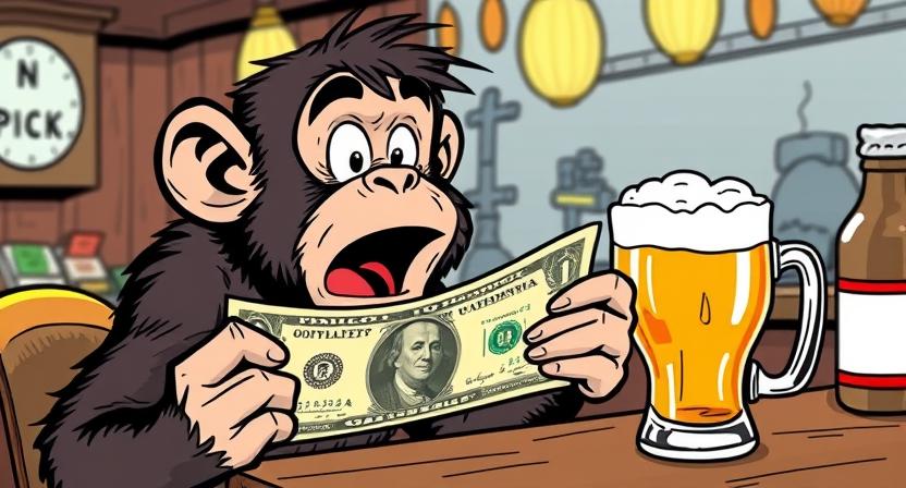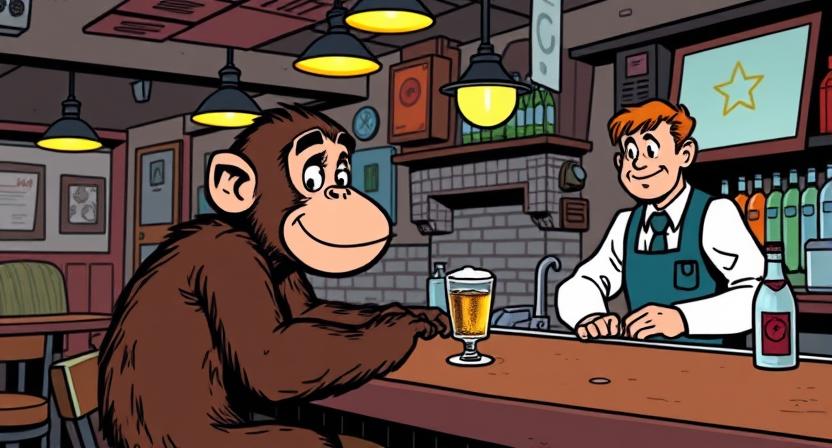 So, he draws a beer from the tap and walks over to hand it to the monkey…