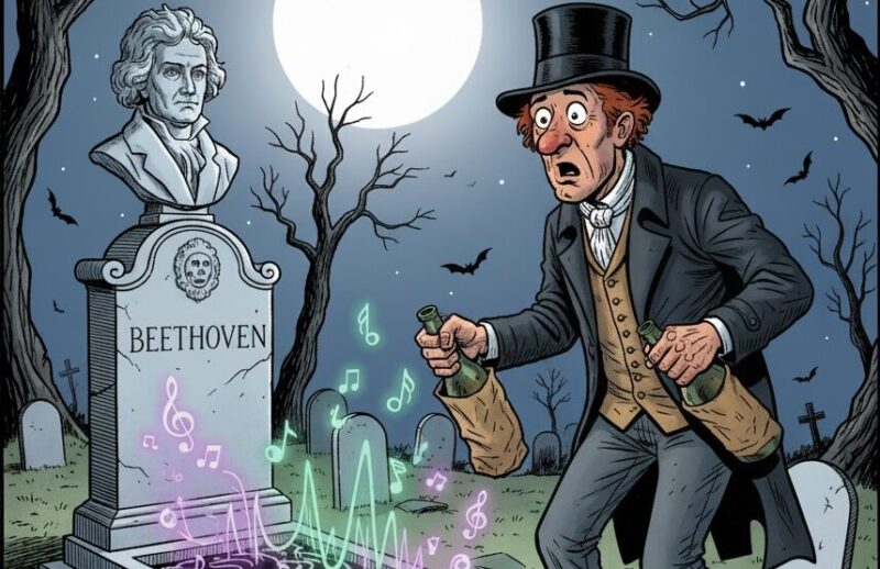 A couple days later the town drunk was walking through the cemetery and heard some strange noises coming from the area where Beethoven was buried.