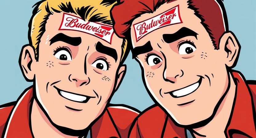 The officer walks up slow, takinâ one long look at the scene â two fellas grinninâ from ear to ear with Budweiser labels plastered across their foreheads.