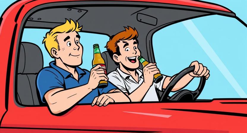 âQuick, finish your beer, peel off the label, stick it on your forehead, and hide the bottle under your seat!â