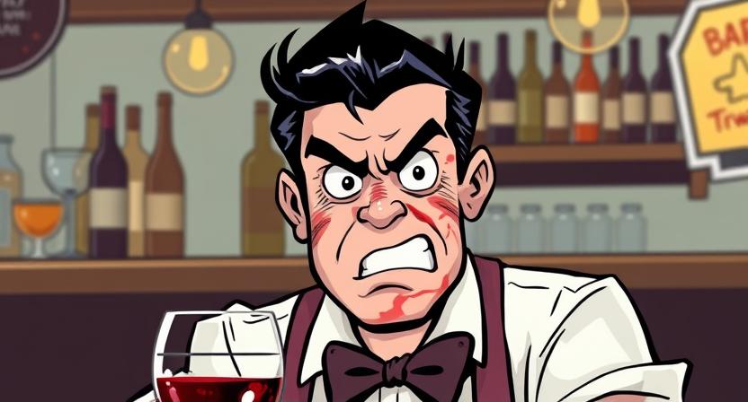 “But you just threw the wine in my face again!” the bartender exclaims.