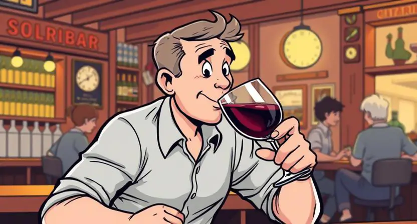 He takes a sip of the wine, then he throws the remainder into the bartender’s face!