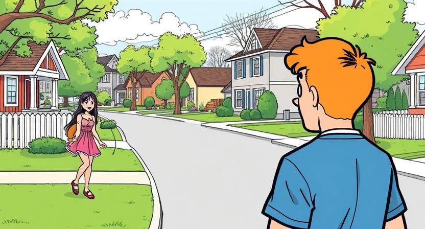 They flirt with each other, find out she lives down the street then, the boy goes back home to tell his fatherâŚ