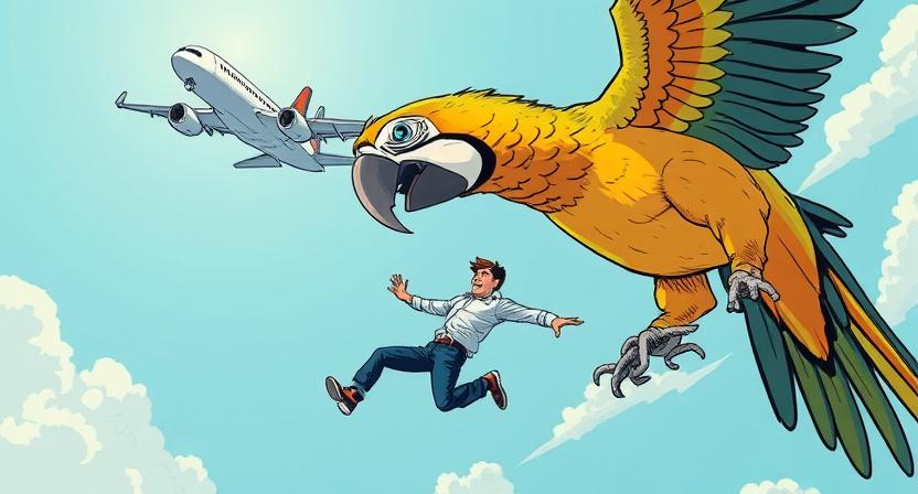 The next thing they know, both the man and the parrot are thrown out of the emergency exit by two burly stewards.