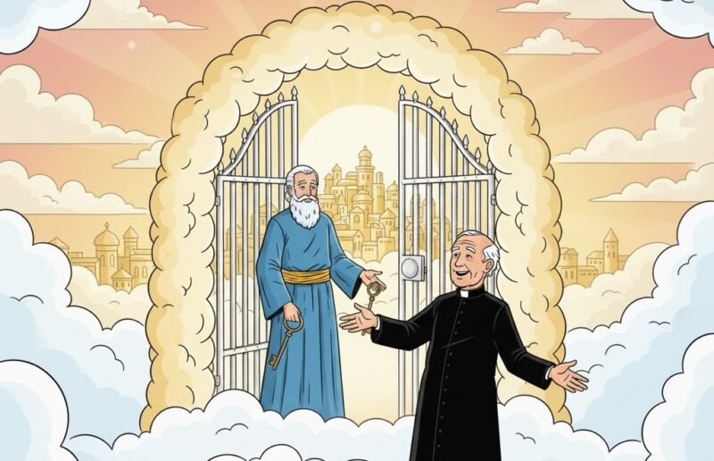 An elderly priest dies and is welcomed at the Pearly Gates by St Peter.