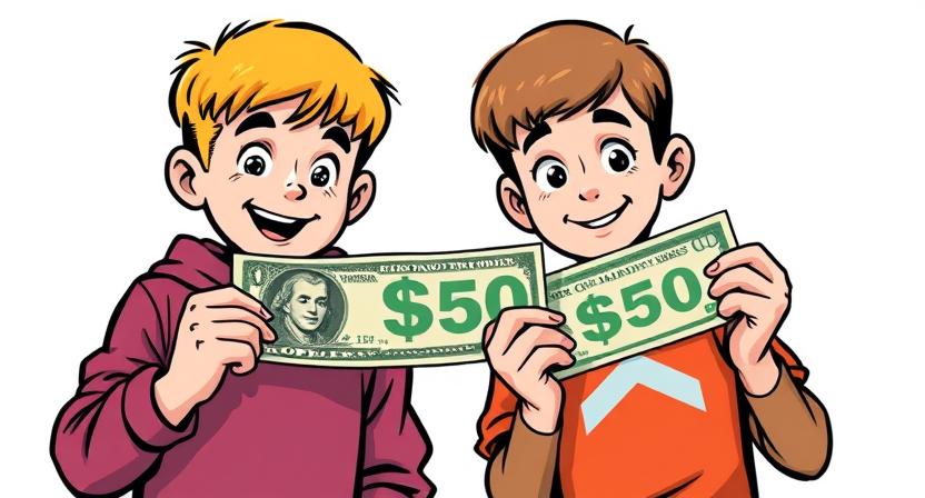 Two young brothers, ages 10 and 12, came home with two $50 bills…
