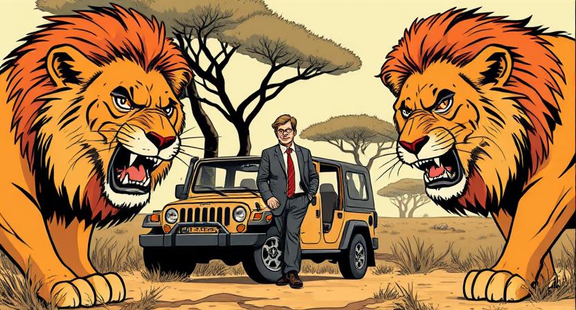 The lions are hungry, so they pounce on the lawyer and eat him.