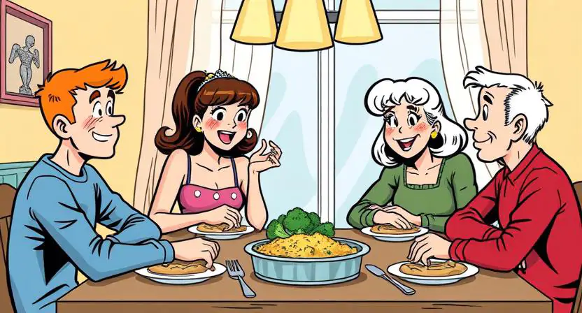 A woman goes to her boyfriend’s parents’ house for dinner…
