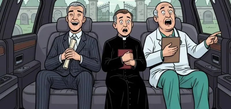 The lawyer then said, “I’m ashamed of both of you. When I saw you’d underpaid, I took your money out of the coffin and left a personal check for the full amount. Reverend, you owe me $10,000, and Doctor, you own me $20,000.”