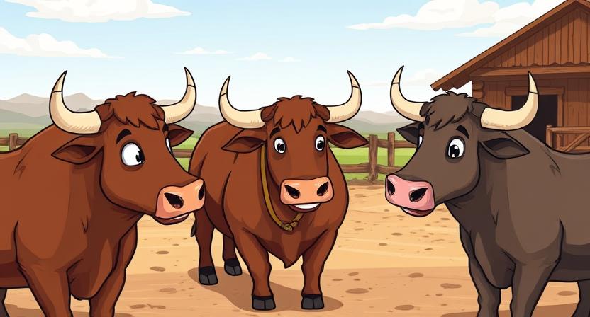Three bulls heard the rancher was bringing another bull onto the ranch…