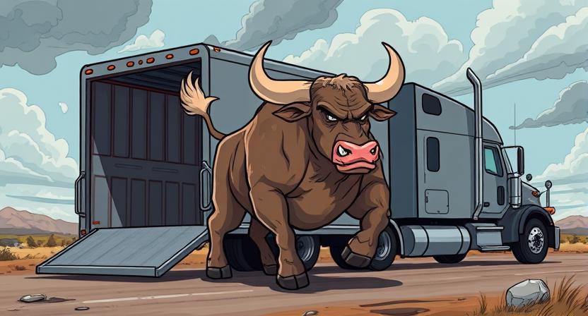 Just then an 18-wheeler pulls up in the pasture carrying the biggest bull they’ve ever seen.