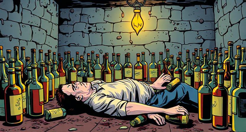The alcoholic had drunk all the booze, and was incredibly sick from a hangover that never cured…
