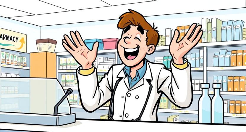 The pharmacist replies, “Yes, we have a large variety, the works.”
