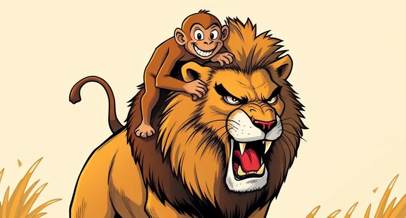 The monkey soon catches up with the lion, spills the beans, and strikes a deal for himself with the lion.