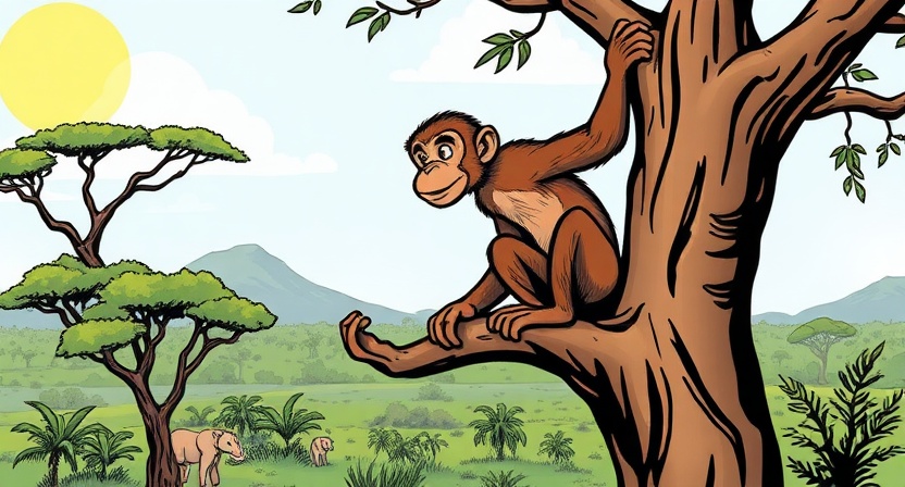 Meanwhile, a monkey has been watching the whole scene from a nearby tree.