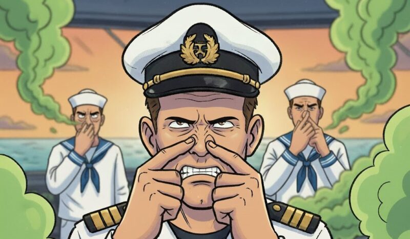 Even the captain, a man who’d weathered storms and smelled bilge water in every port, stumbles back clutching his nose.
