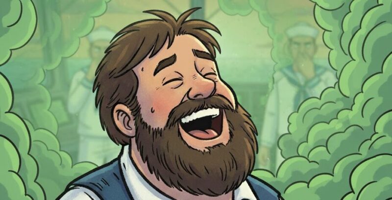 As the captain steps forward to greet him, the man suddenly lets out the most vile, thunderous, gut-wrenching fart ever heard on the seven seas.