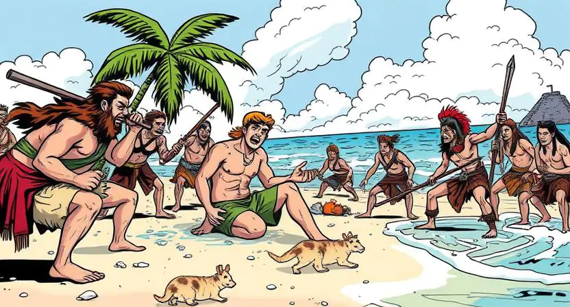 A shipwreck survivor washes up on an island beach, and is immediately surrounded by a group of native warriors…