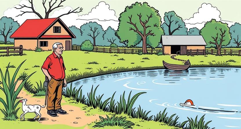 One evening the farmer decides to go down to the pond to look it over, as he hadnβt been down there for a while.