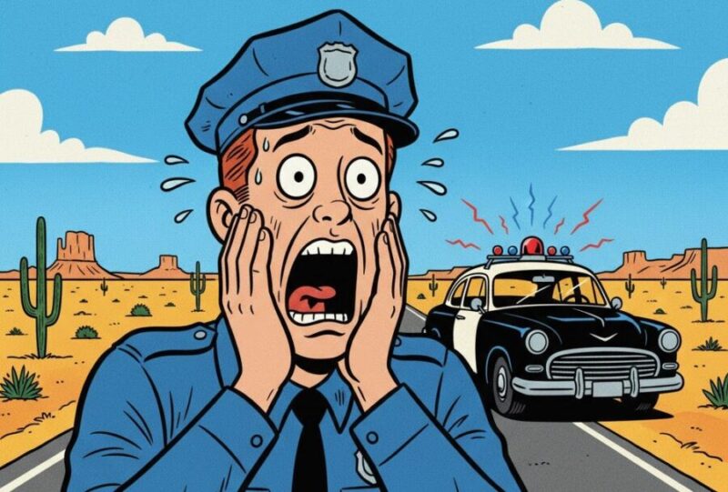 The driver, obviously confused, says to him, “Officer, I donโt understand, I was doing exactly the speed limit!”
