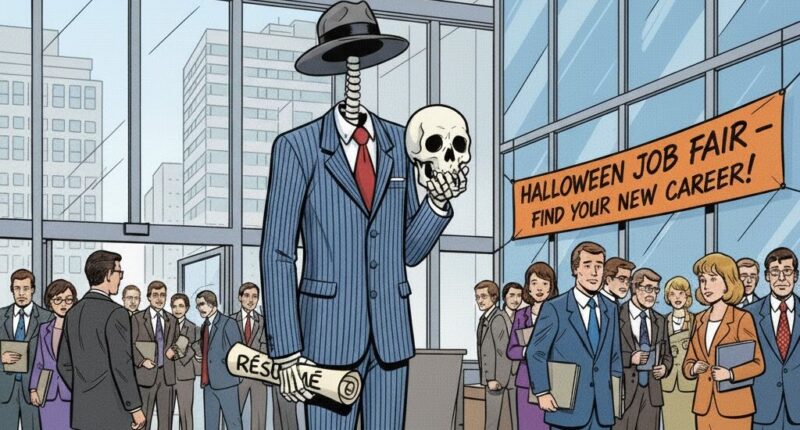 “Well,” the skeleton says, “I used to work as a trombonist, but everyone said they could see right through me. Then I tried being a firefighter, but I didn’t have the guts. I even tried being a motivational speaker, but people said my stories were a bit… lifeless.”