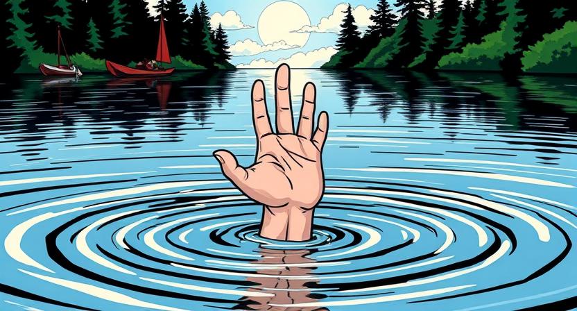 He stands up in the boat and says, “Um, I left my extra line on land.”