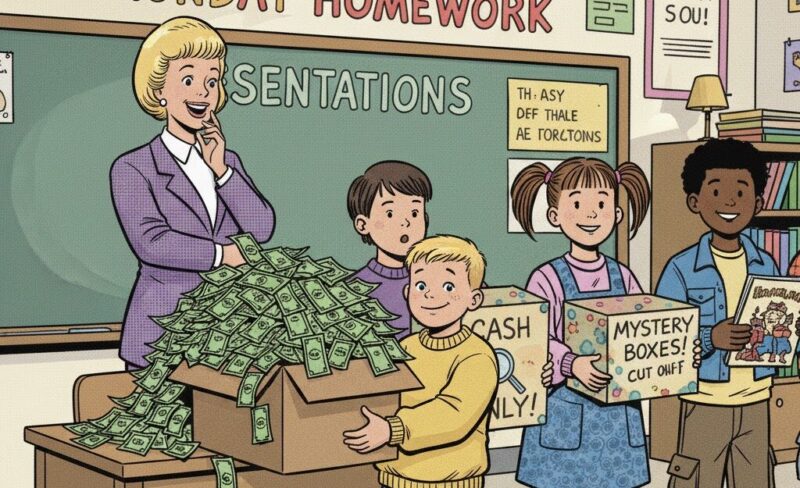 Then came Little Johnny, lugging a giant cardboard box that he plopped on the teacher’s desk.