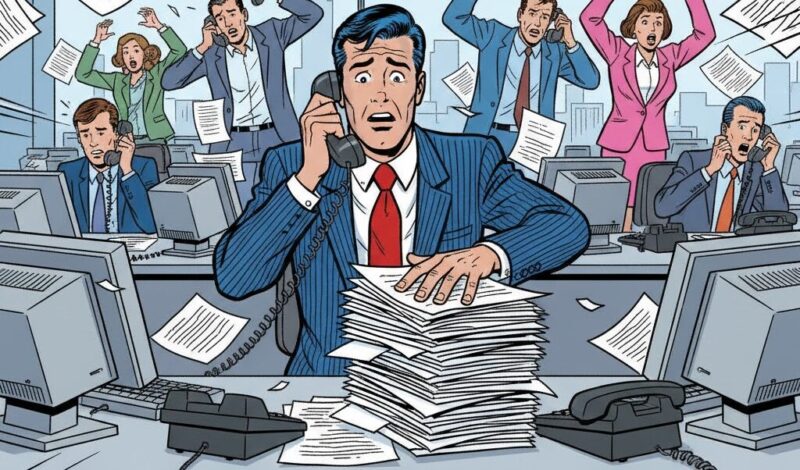 Phones are ringing, papers are flying, and he answers with that half-distracted tone every overworked husband knows too well.